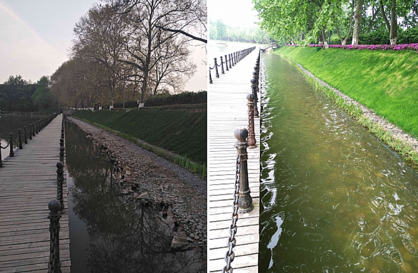 項目簡介:東湖天鵝湖位于武漢東湖賓館之內(nèi),水域面積13.5萬m2。治理前水體總氮、總磷均超過地表水Ⅴ類閾值,水體富營養(yǎng)化,藻類滋生。經(jīng)過中科水生人的不懈奮斗,在10天內(nèi)完成天鵝湖應(yīng)急治理工程。通過應(yīng)急除藻、內(nèi)源控磷、沉水植物重建等生態(tài)手段,天鵝湖水體主要指標達到地表水Ⅳ標準,水體透明度由40cm以下上升到60cm以上,恢復(fù)西、南沿岸沉水植物,整個水域生態(tài)景觀得到大幅提升。