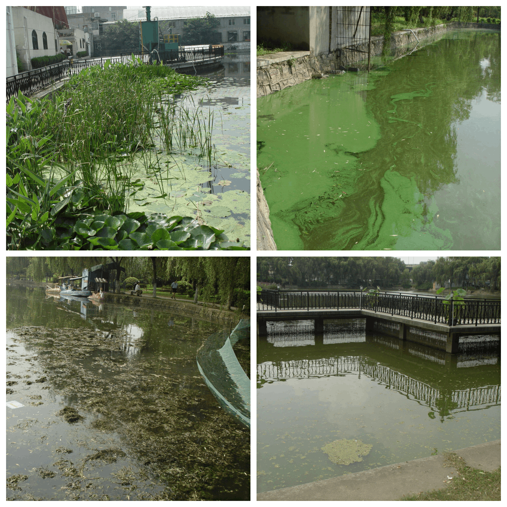 公園建成前,四美塘是一個垃圾集散地和工地廢墟,湖塘水質(zhì)呈墨色,散發(fā)著臭氣,是蚊蠅的孳生地、城市環(huán)境建設(shè)的死角。工程實施前,2009年四美塘為劣Ⅴ類地表水質(zhì)(GB3838-2002),氮、磷污染嚴重,重度富營養(yǎng),藍藻水華嚴重。